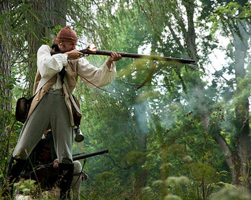 I en gammal borgruin i Risvedens djupa skogar har ett gäng rövare och upprorisk allmoge tagit sin tillflykt. Samtidigt nere i dalen tar den indelte soldaten avsked av familjen för att marschera till mönstring och exercis. På bygden lever allmogen i slit och armod, med undantag för vissa stunder av fest och glam. Och på herresätet promenerar herrskapet i parken och blickar ut över sjön Anten, med en horisont av trädtoppar i fjärran.