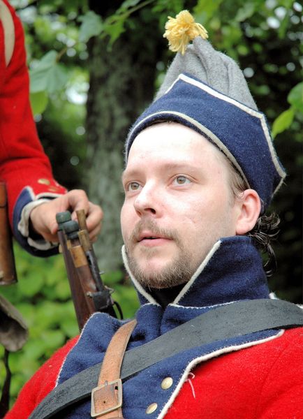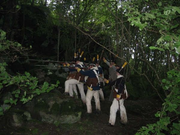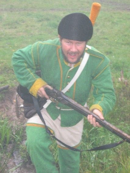 Ordförande Christer Johansson Stor instas av Westgiöta Gustavianers medlemmar Under året har olika arbetsgrupper inom föreningen WG tagit hand om sin utvalda del av den organisatoriska kakan. Allt koordinerat av föreningens ordförande Christer Johansson. Mat, tältlån, krut, hemvärn, fordon, anskaffande av ny material är några delar som kan nämnas. En stor del av ansvaret vad anbelangar hanteringen av material står WG:s kvartermästare Tommy Andersson och Kjelle Hedbom för. De har b la fått åka och hämta tält i Karlsborg, uniformer i Uddevalla m.m. Utan denna insats hade det hela inte blivit mycket av. Tord Finyak med sina underofficerare har under årets ”lågsäsong” sett till så att Westgiöta Gustavianers trupp blivit mer och mer kompetent genom ett flertal övningar på söndagarna. Både vad gäller den enskilda soldatens uppträdande som kompaniets samlat. Tord har också lagt ned ett stort arbete på att få hit de ungerska husarerna och göra det bästa för deras välbefinnande under besöket i Sverige. Lars Erlandsson med WGMF var likväl i år också ypperliga mästare på krut och kanoner. Likt de andra åren innan har föreningen haft stor hjälp av norske Björn Murud med sitt stora kontaktnät inom reenactment i Europa. B la i år hade vi ett större antal tjeckiska deltagare än förra året. Förutom soldater var dessa även representerade av ett antal civila trossdamer som även de bistod WG:s tross på ett hjälpsamt sätt i lägret på lördagskvällen när festmaten skulle serveras. Maten hade fyra stycken damer ur Westgiöta Gustavianer tillrett (Karin, Lina, Maria, Sara) och bestod b la av en utsökt potatispuddig, helstekt gris m.m. Hjälp fick de också av Sara Lodin och Kristina Steen från Stockholm. Utöver detta serverades frukost och lunch. Efteråt var de alla milt sagt trötta efter insatsen. Slaget såg trolsk ut på avstånd Slaget under lördagen såg på avstånd nästan magiskt ut. Ur den blöta marken stävade termisk dimma upp i regnet. Det gjorde att det nästan såg lite filmiskt ut när man betrakade det hela på avstånd. Många fina bilder kunde tas under förloppet. Årets upplaga av Gunnebo Slottsspel blev mycket blöt. Trots detta var förberedelserna omfattande och humöret på topp bland arrangörer och deltagare. Träskmark eller fältläger? Stor del av att vi alla träffas är förutom själva krigardelen även själva återskapandet av lägerlivet. I år regnade ett sådant levande lägerlivnästa bort. Regnet öste ned då lägret grupperades. Det grävdes dock vattenavledande kanaler runt tälten så att vatten kunde rinna av ned i diket och det kunde sovas någorlunda bra lägret. Ändå kunde man ibland från värmländskt håll höra den superlativa frasen; -De e jämt hälja dä!. En tapper grupp sov under hela helgen i själva lägret, andra valde att inkvarteras i stugor och på kasern inne på regementet. Särskild hjälp hade vi av Mölndals hembygdsförenings ordförande Dennis Funke som kunde bistå oss med kontakter angånde stugor i närområdet. Gustav II Adolfs fotfänika var särdeles tappra som i egenskap av frikår, huserade både utskrivningskarlar, kvinnor och barn i lägret hela helgen trots regnet. Ett flertal deltagande föreningar En ny grupp gjorde i år också sitt intåg på Gunnebo, Upplands regemente anno 1806-1808 från Stockholm. Killarna är seriöst intresserade av att återskapa sitt regemente både vad gäller själva det praktiska men även utrustningsmässigt på ett ypperligt sätt. Paradoxalt nog togs den gamla beteckingen Upplands regemente (S1) bort just i år och ersattes med det mer teknokratiska namnet ”Ledningsregementet (LedR)” för det gamla förbandet. Det visar på att det är viktigt med grupper som bevarar militärkulturhistorien. Förutom de tidigare nämnda tjeckerna så var även husarerna från Ungern med i år igen. De lyckades lika fullt ut att få styr på sina inhyrda hästar som var av mycket vacker karaktär i år. Därom kan vi b la tacka hovslagare Dick Ahlberg i Ale Kommun. Wermlands Fältjägare, Oravais Historiska förening (Finland), Carlskrona Volontairregemente, Onsöy Jegercompagnie (Norge), Faaborg Kanonerlaug (Danmark) är några andra föreningar som medverkade. Slottsområdet förgylldes också civilt av sällskapet Gustafs Skål som genomförde dramatiserade slottsvisningar och agerade vid öppningsparaden som kung med följe. Konungen uppenbarade sig också på slagfältet för att moraliskt stödja de svenska trupperna.