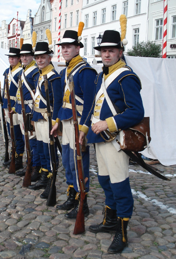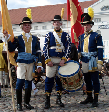 Den militära truppen uppträder i uniform m/1779 för Göteborgs garnionsregemente.