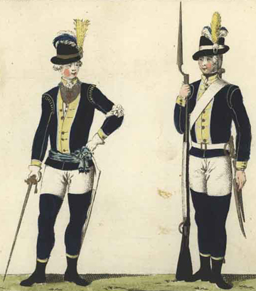 Uniformen har den av Gustav III designade nationella dräkten som förebild. Inspirationen kom från det tidiga 1600-talets mansdräkter och svenska bondedräkter. Uniformen har också brittiska inslag, till exempel hatten och manskapsjackan. Eschavaderna (benbeklädnaderna) och kängorna var av ungersk modell. Uniformstypen användes fram till i början av 1790-talet och ersattes då av en uniform av mer kontinentalt snitt (m/1792-1794 och m/1798).